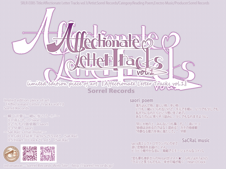 *・【リリース】限定盤 小作品集『Affectionate Letter Tracks vol.1』by 2017.10.29